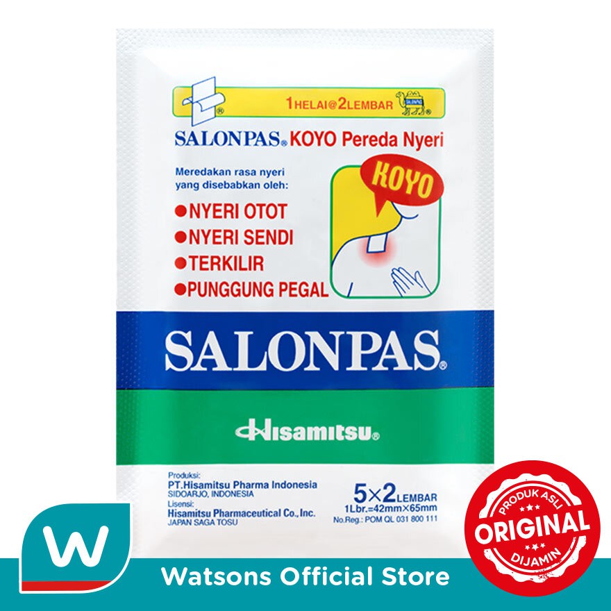 Salonpas Koyo 10's (Sachet) dijual oleh toko Watsons Indonesia Official Shop yang berlokasi di KAB. TANGERANG.