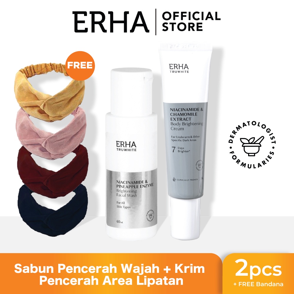 Beli ERHA Bundling Truwhite Body Brightening Cream & Truwhite Facial Wash (Free Bandana) di sini