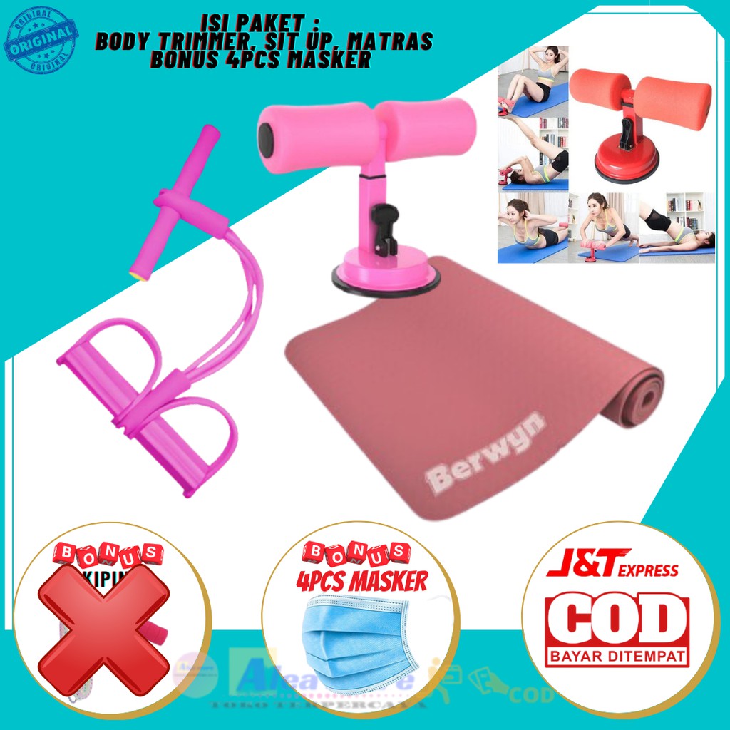Beli Paket Olahraga Alat Gym Fitnes Pelangsing Tubuh / Pengencang Perut / Sit Up Matras Dan Tali Skipping di sini