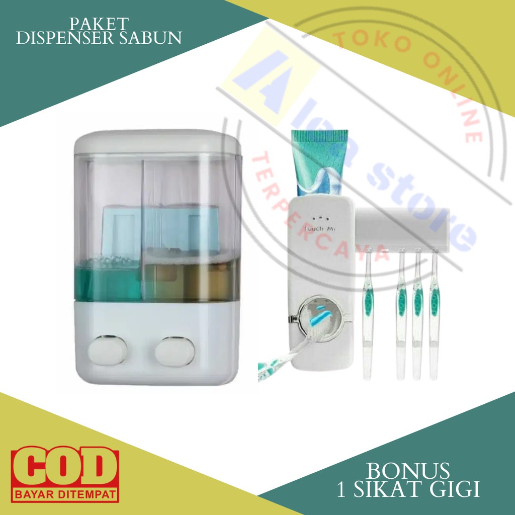 Nama produknya adalah Paket TERLARIS Dispenser Sabun 2 Tabung Dan Dispenser Odol & tempat Sikat Gigi Free 1 Sikat Gigi. waktu tulisan ini diupload sudah terjual 45 kali. Harga yang ditawarkan pun terjangkau, produk dengan rating 4.2 dari 5 bintang ini ditawarkan dengan harga mulai 45000 .